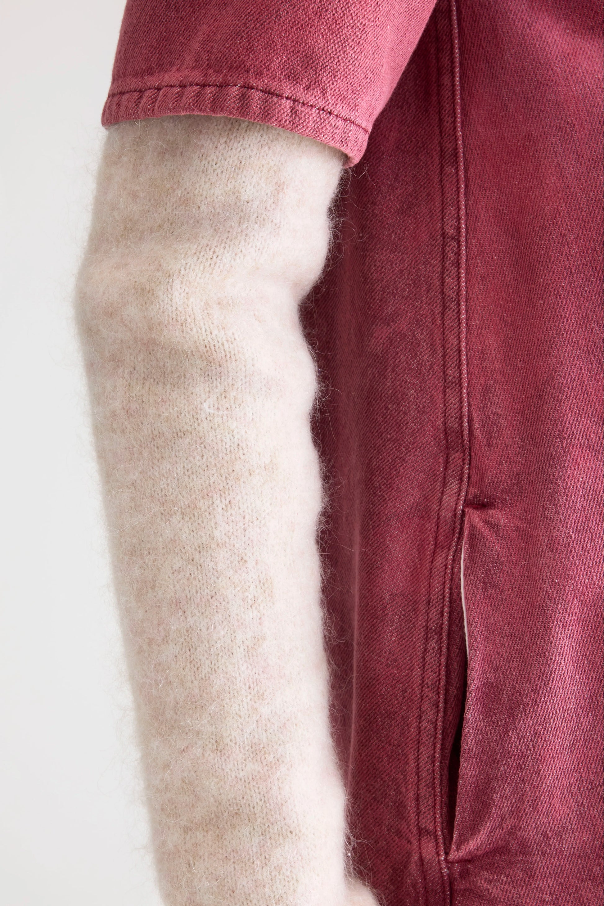 Regular denim dress in a red stone wash denim with short sleeves and a structured silhouette.