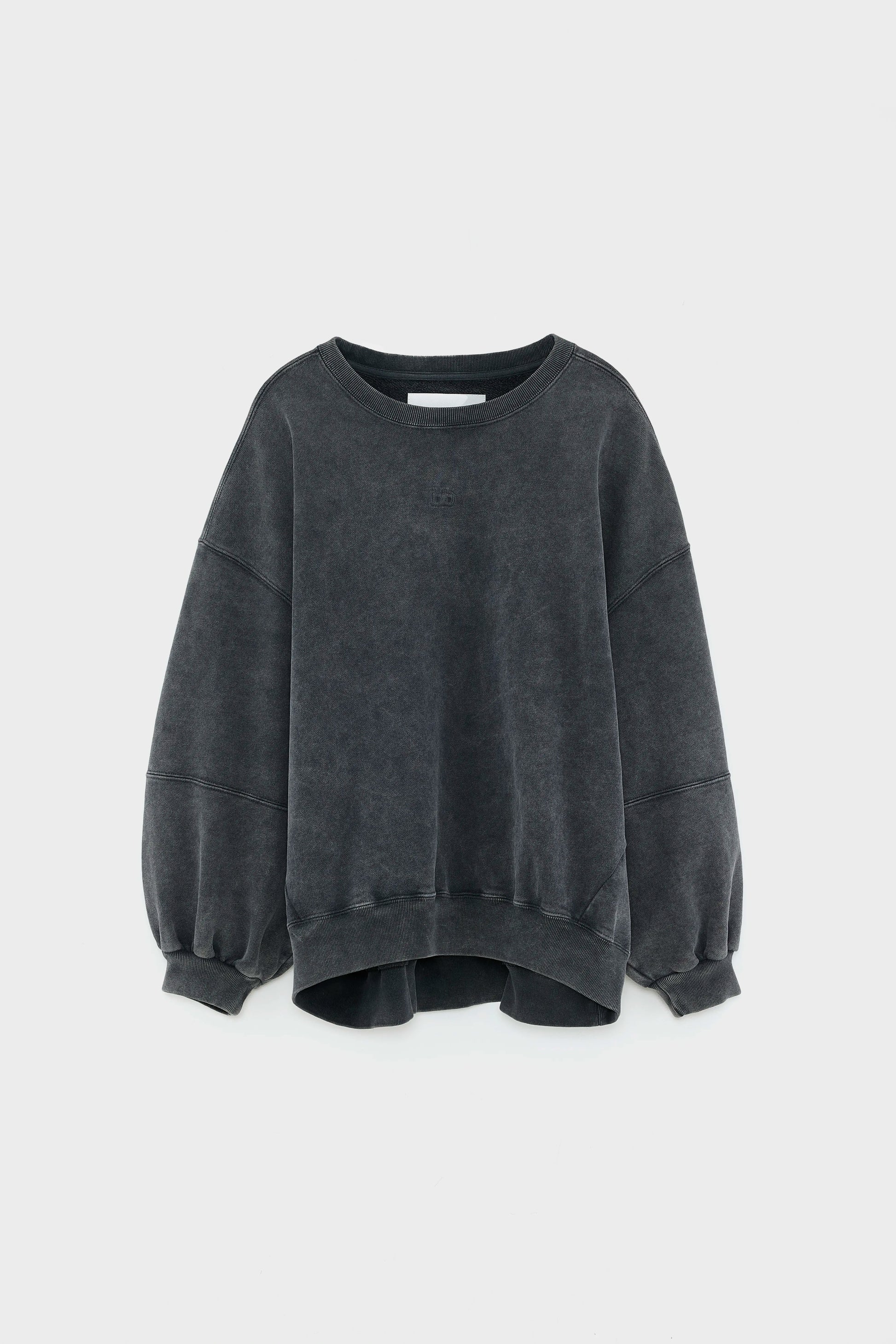 Oversized crewneck sweatshirt with long balloon sleeves and dropped shoulders, made from washed black cotton jersey and featuring a "bb" embossed print.